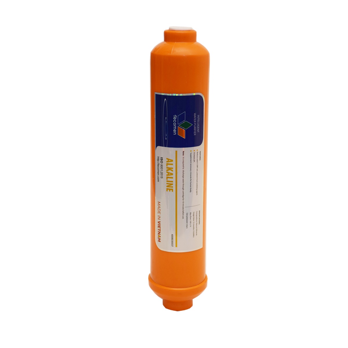 فیلتر قلیایی آلکالین به شکل کپسول طراحی شده و دارای یون هایی است که باعث افزایش PH می شود. فیلتر قلیایی تکومن به عنوان هفتمین فیلتر و به درخواست مشتری روی دستگاه نصب می گردد. فیلتر مذکور ساخت کشور ویتنام است و عبارت made in Vietnam به روی آن حک شده است. ضمنا از کیفیت بسیار خوبی برخوردار است و آزمون های مربوط به NSF، WATER QUALITY، ISO9001، ISO2015 را بخوبی طی نمود و موفق به کسب مجوز از نمادهای بهداشتی شده است.